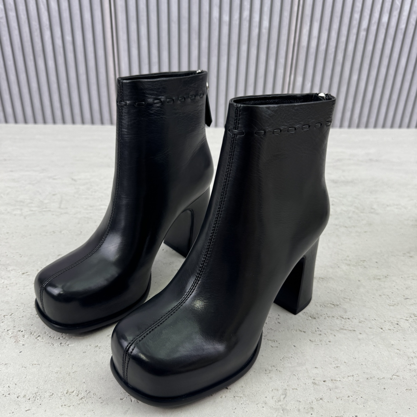 欧洲站欧货真皮女靴2025秋季新款圆头粗跟超高跟马丁靴时装靴短靴