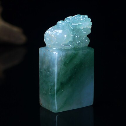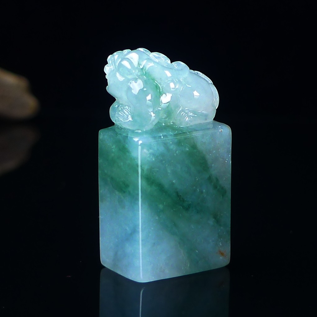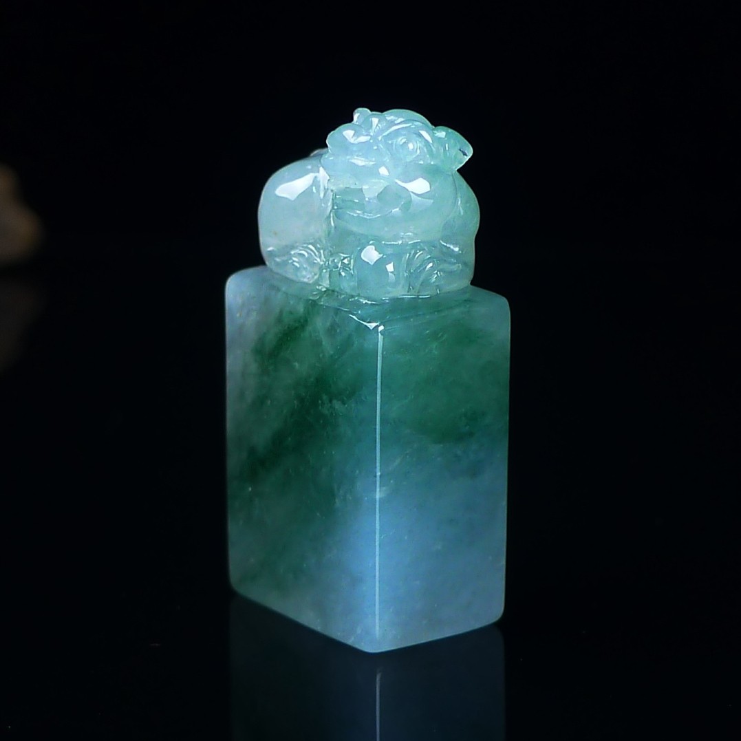 缅甸天然翡翠A货印章玉石 冰种飘花翡翠貔貅印章小摆件篆刻代刻字