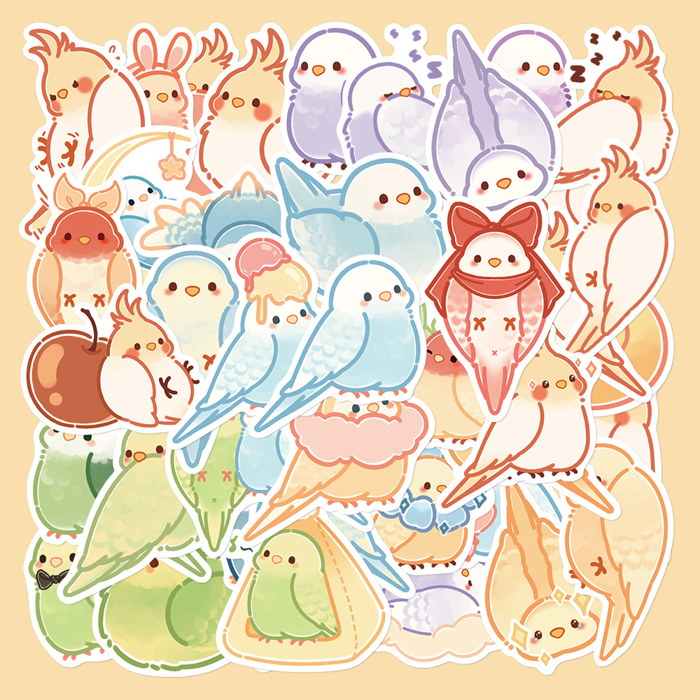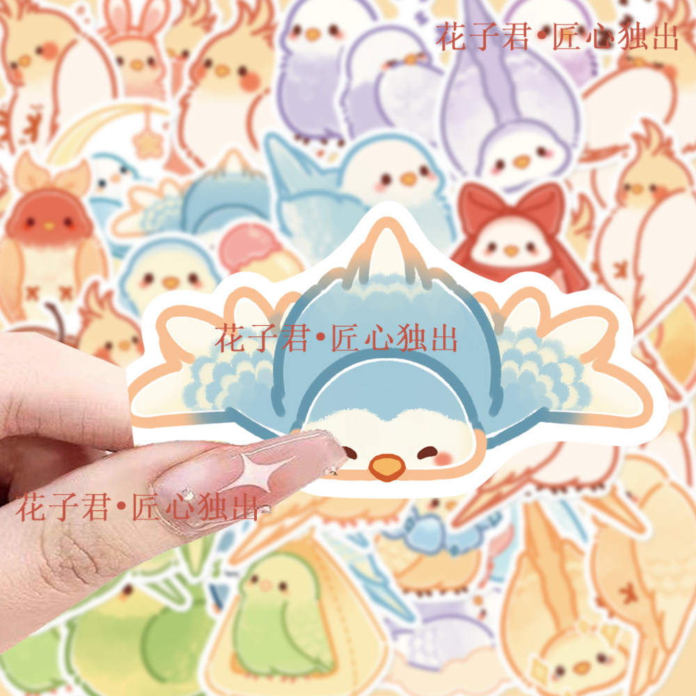 80张卡通可爱鹦鹉贴纸软乎乎萌趣呆呆鹦鹉装饰手机壳手账防水贴画