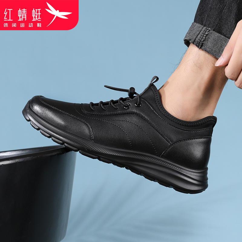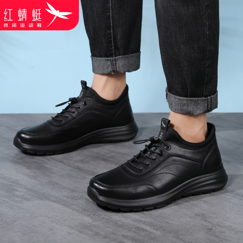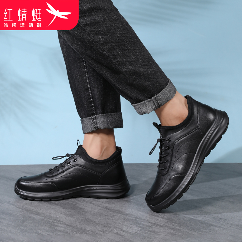 红蜻蜓男鞋秋季真皮运动鞋男休闲皮鞋全牛皮软底旅游男士鞋子防水