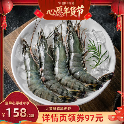 【收官年货节】大黄鲜森黑虎虾鲜冻900g*2盒