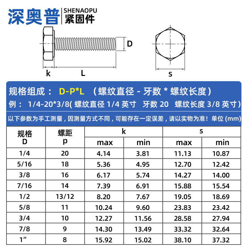 英制304不锈钢外六角unc螺丝加长美标细牙unf螺栓六方螺杆1/4 3/8