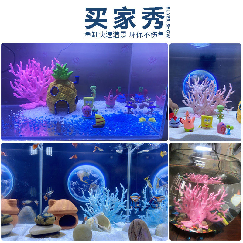 仿真珊瑚菠萝屋鱼缸装饰品假树水族箱躲避屋摆件布景懒人造景套餐