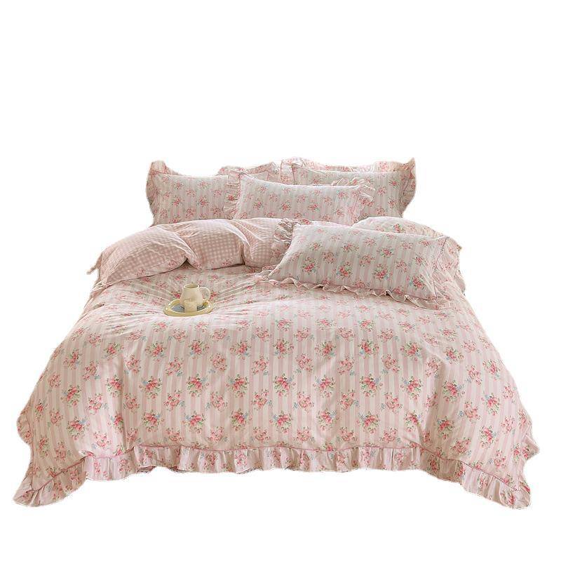 韩版公主风纯棉床上四件套床裙全棉被套床单床品4初恋粉色1.5/8m