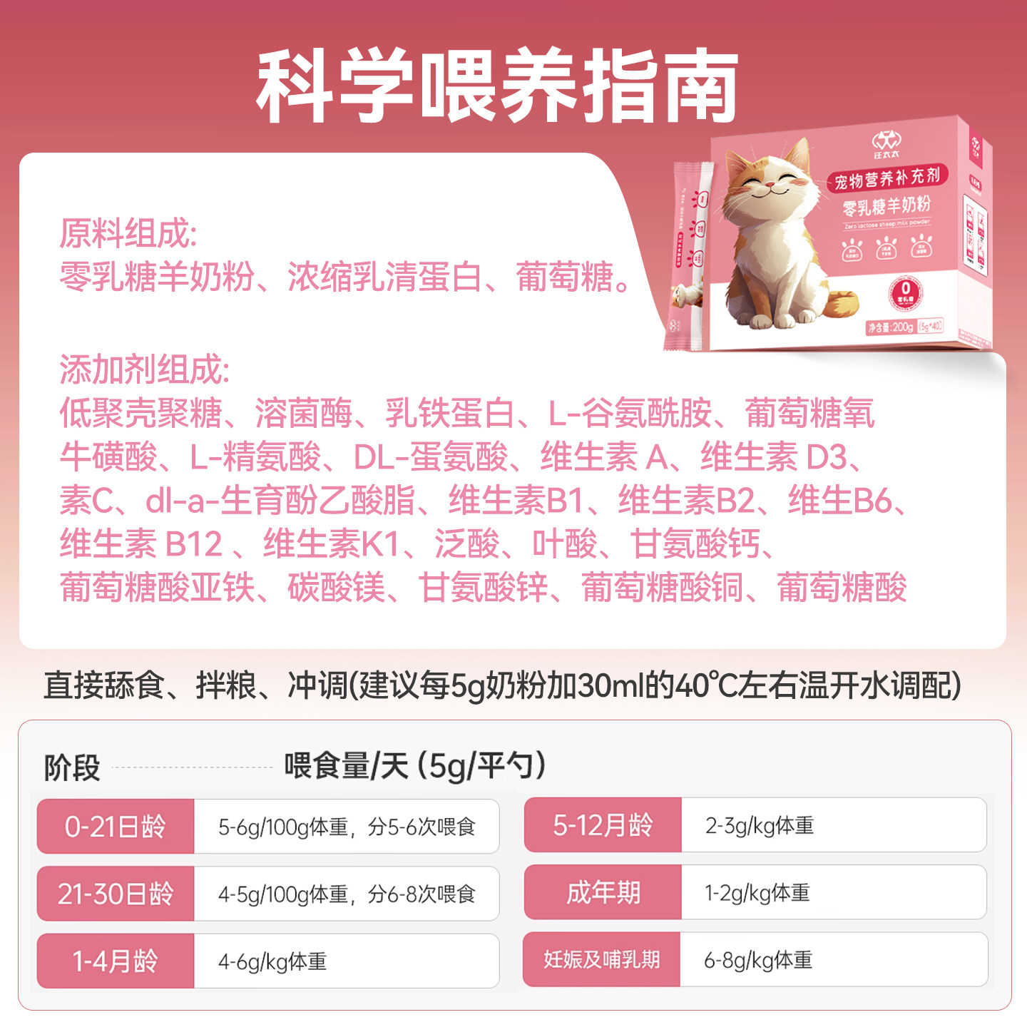 羊奶粉猫用0乳糖乳铁蛋白新生奶糕离乳期幼猫专用成猫孕产后奶粉