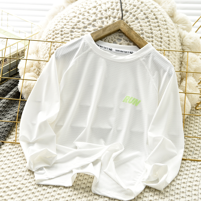 男童长袖t恤春秋速干运动防晒儿童薄款白色打底中大童潮圆领上衣
