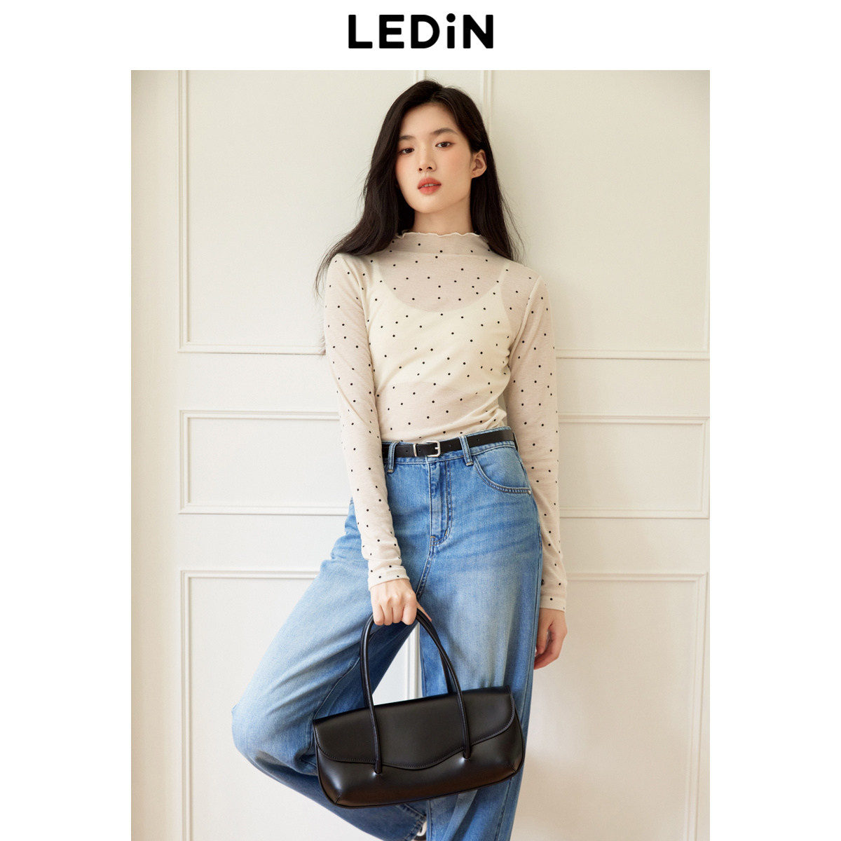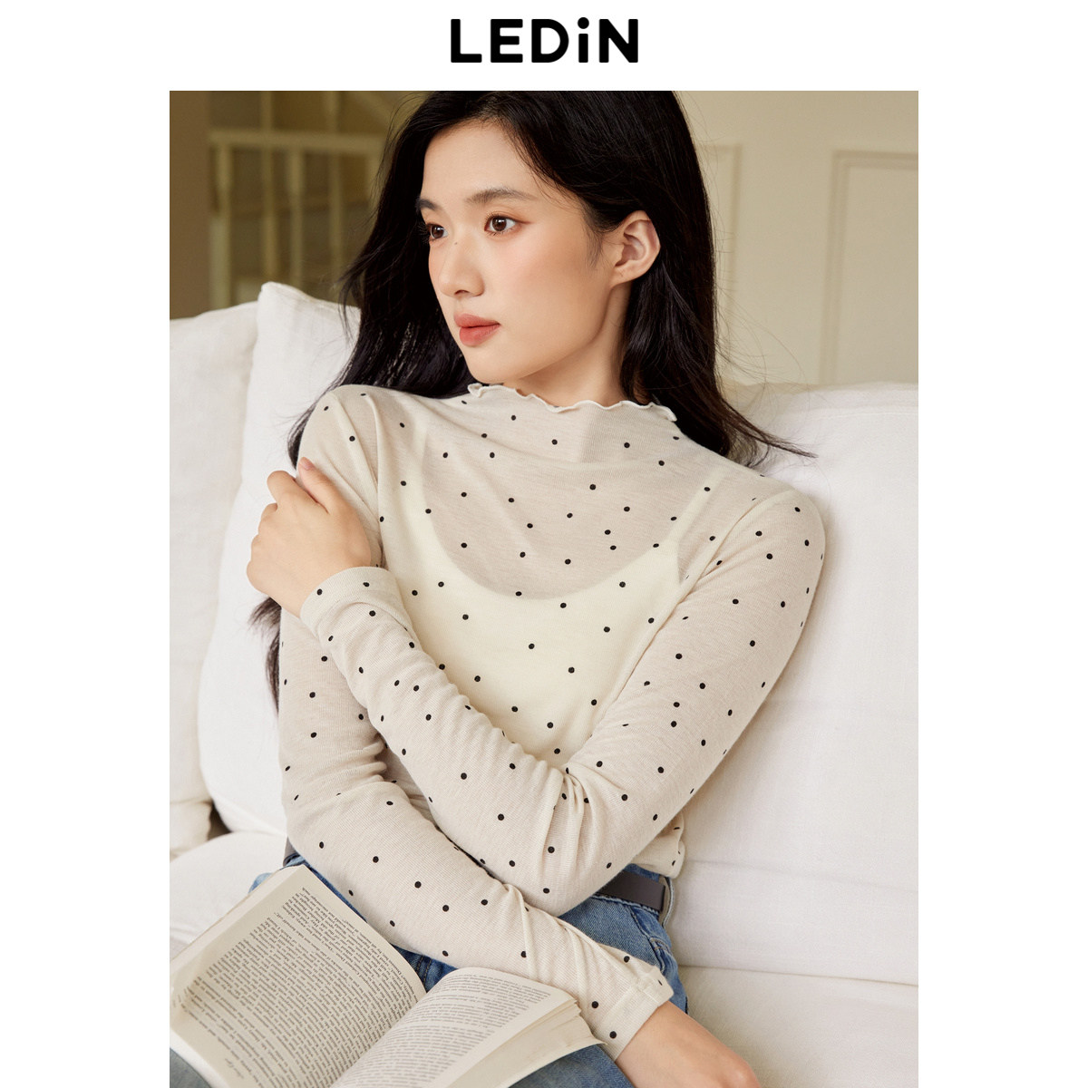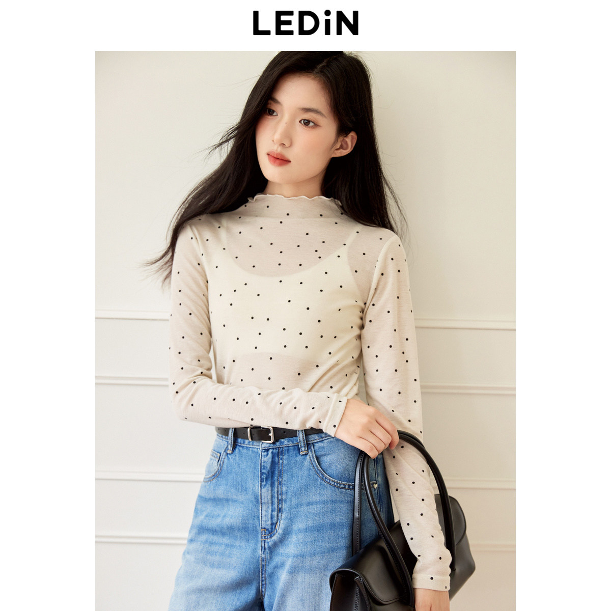 乐町甜美波点百搭针织衫春季针织衫打底衫内搭上衣女长袖T恤