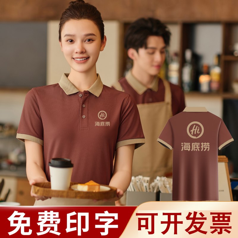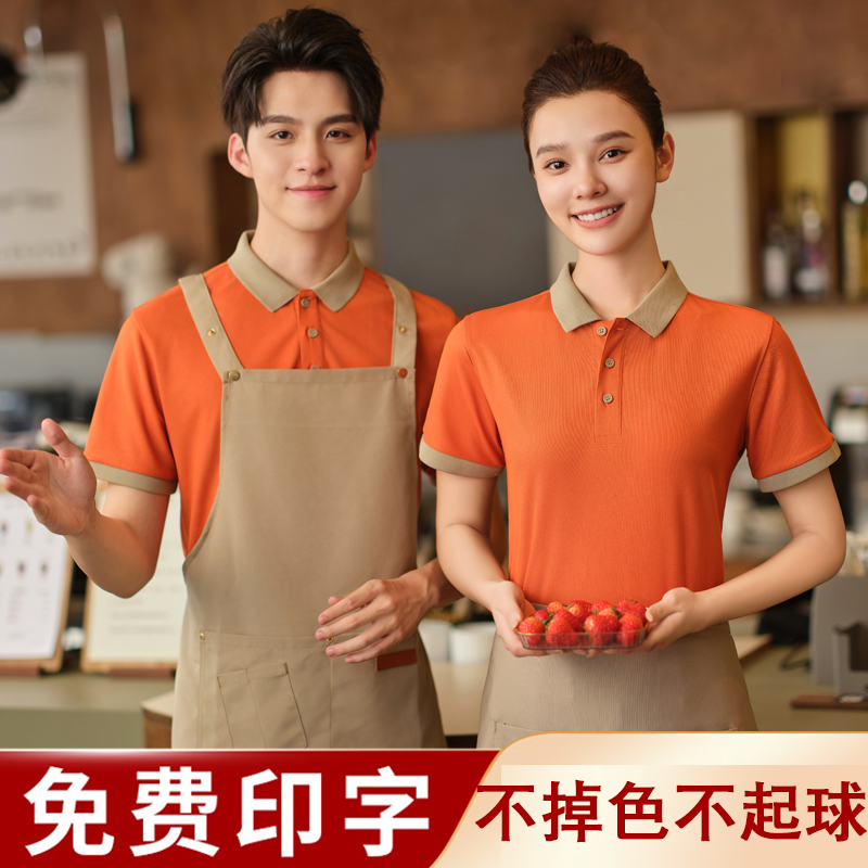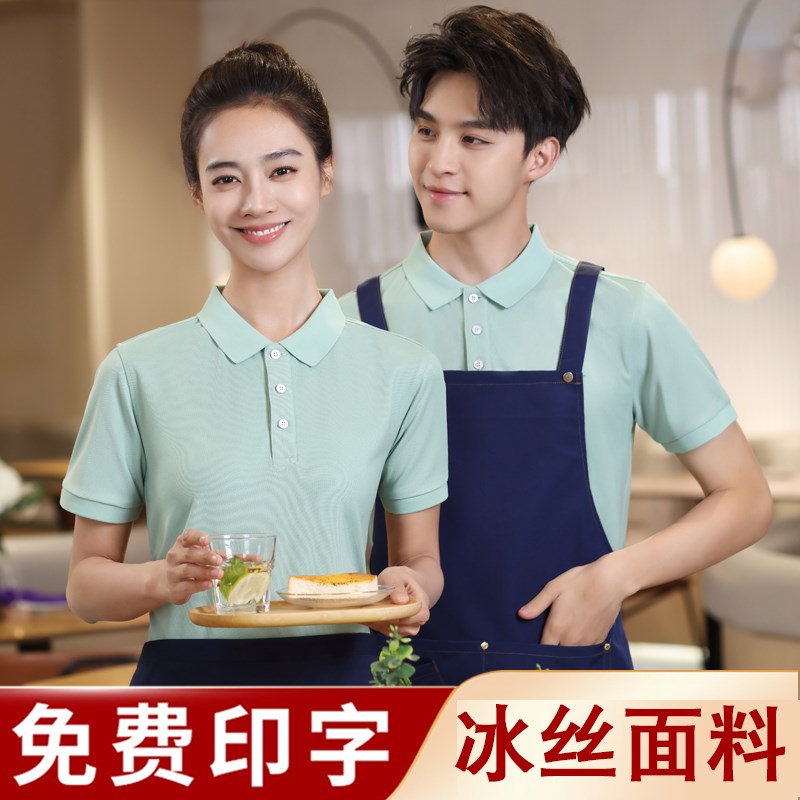 餐饮服务员工作服短袖夏季酒店烧烤火锅饭店超市物业工装t恤定制