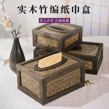 好看耐用复古实木竹编抽纸盒