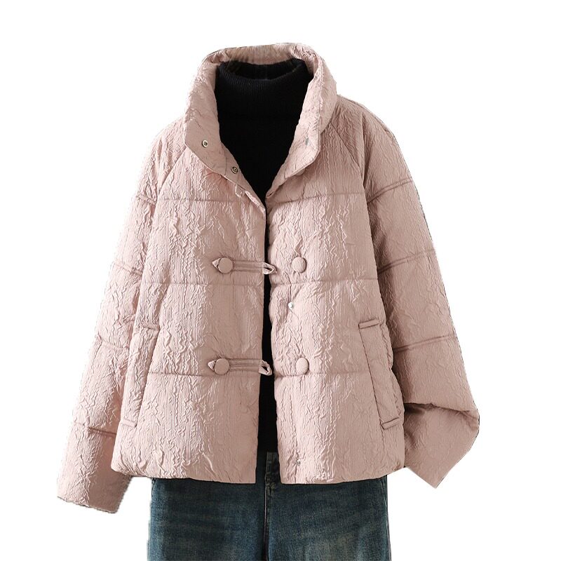 韩版加厚立领粉色肌理感羽绒棉服外套女冬装宽松显瘦棉衣保暖棉袄