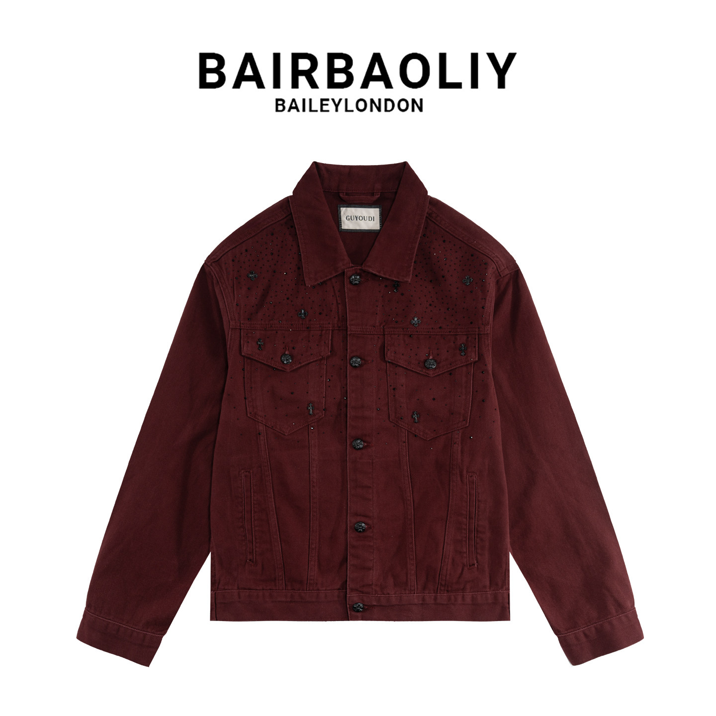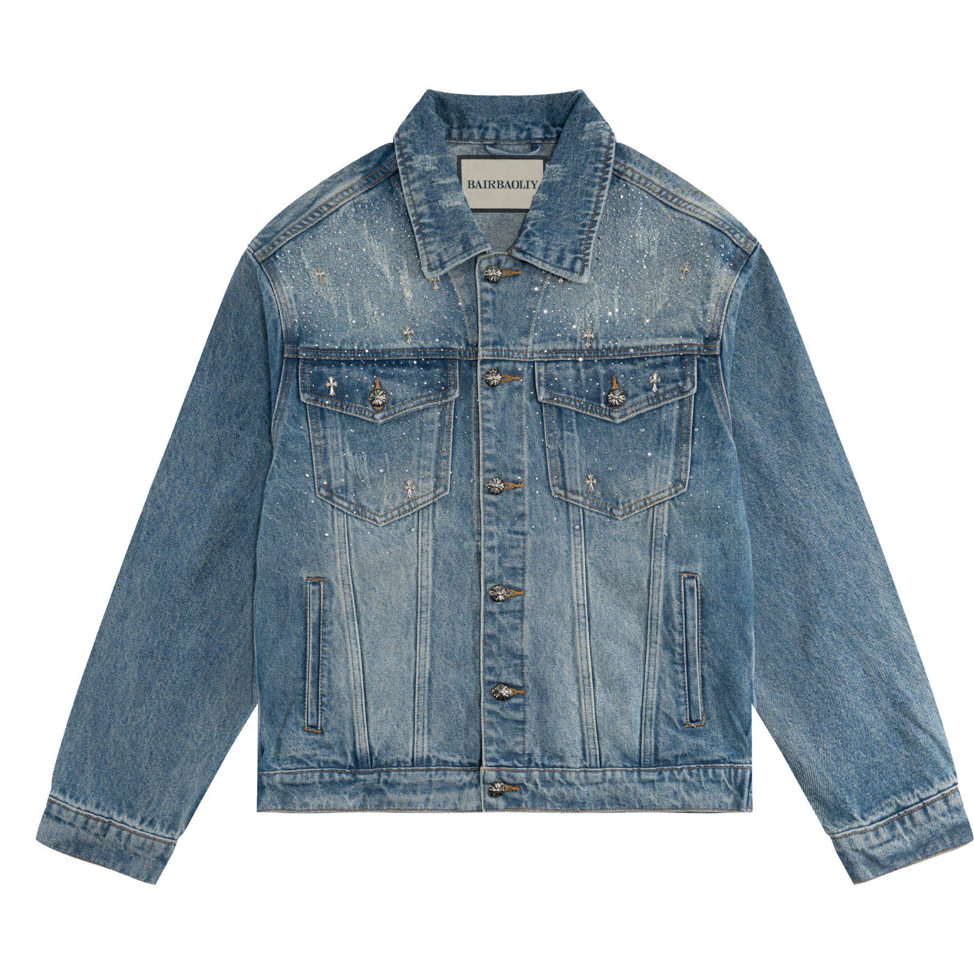BAIRBAOLIY欧货轻奢痞帅十字架烫钻牛仔夹克潮流宽松休闲翻领外套