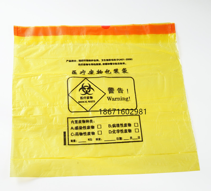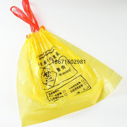 手提式黄色医用医疗废物包装垃圾袋加厚抽绳式自动收口穿绳塑料袋