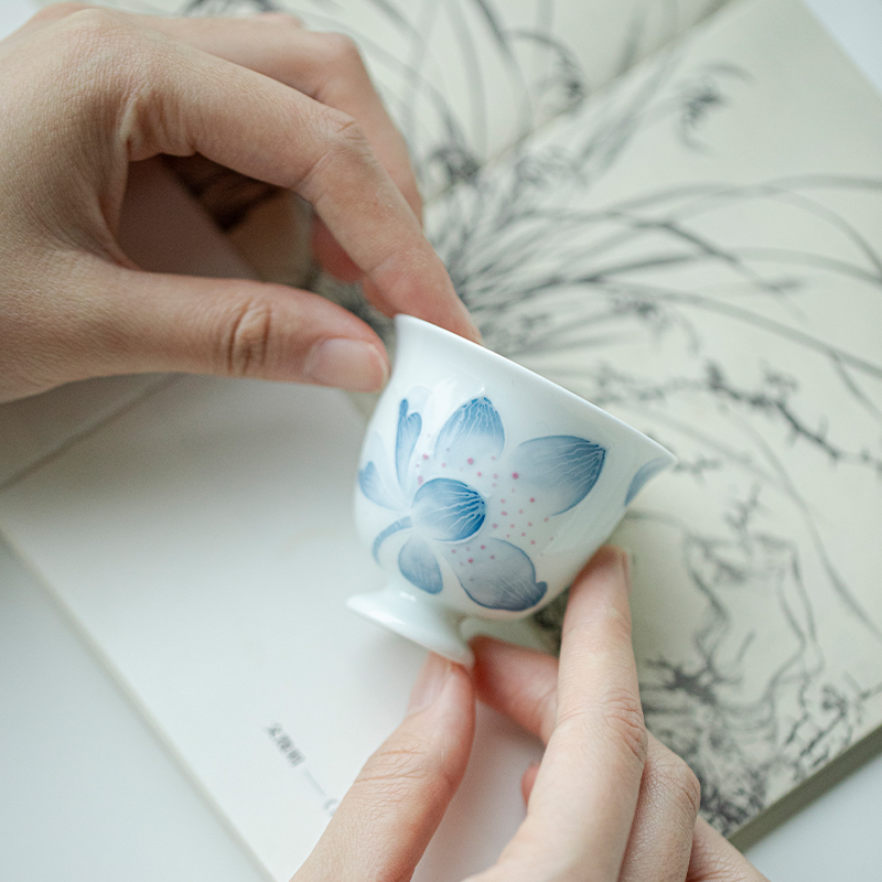 繁野手绘陶瓷小清新小雏菊品茗杯