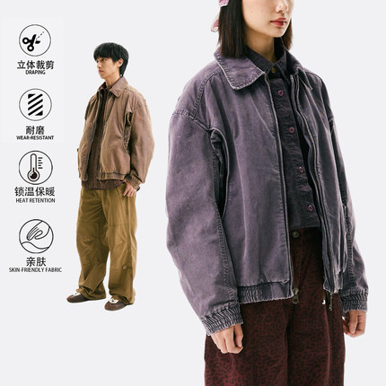 日系复古做旧重磅工装短款外套男女潮牌拼接设计感底特律夹克秋季