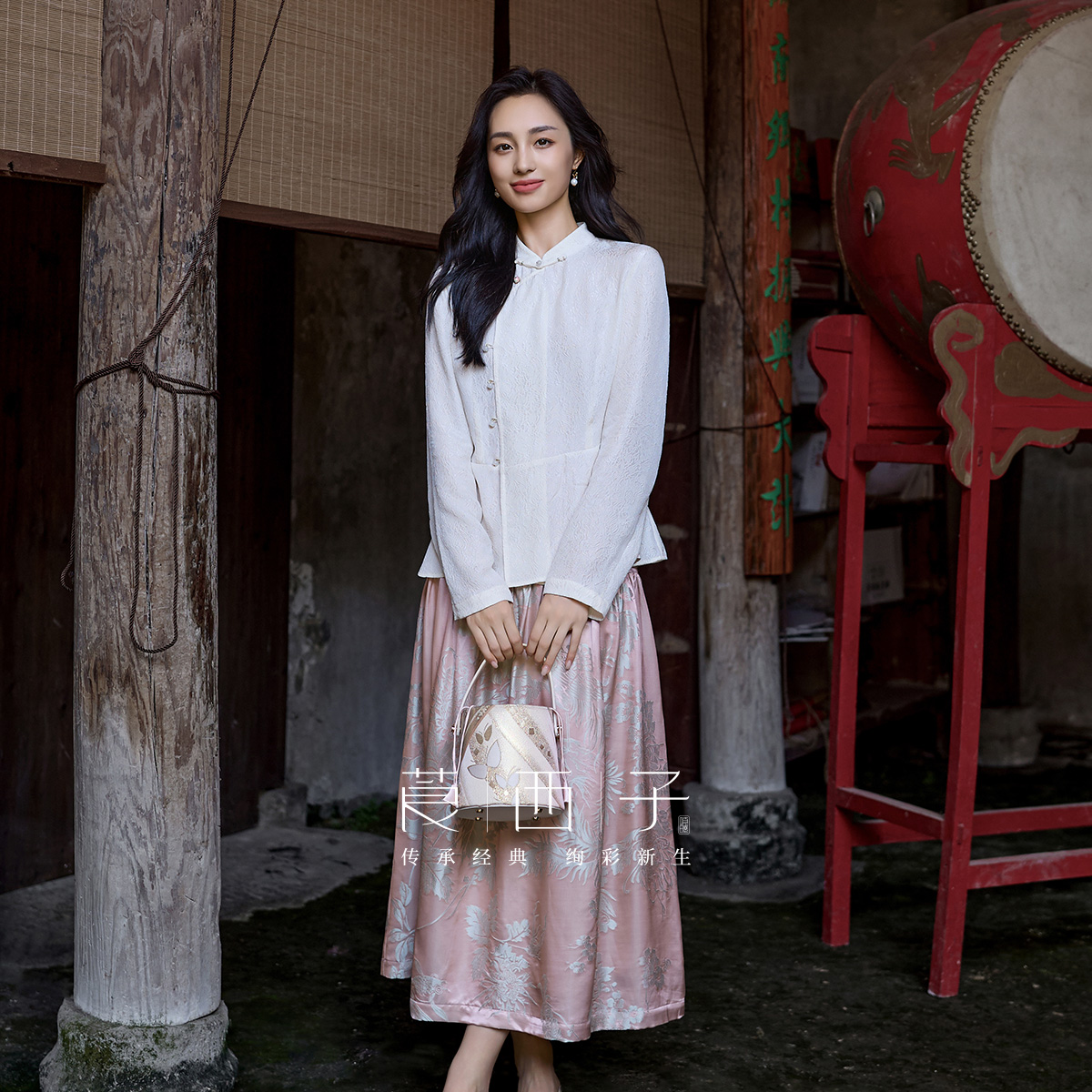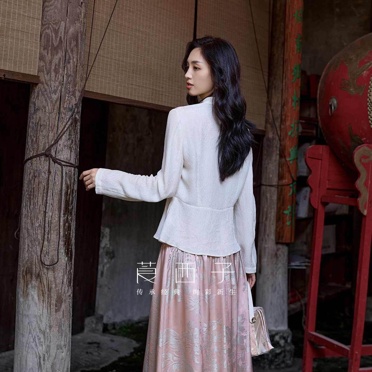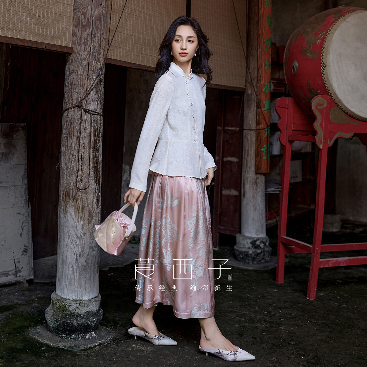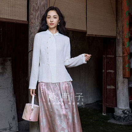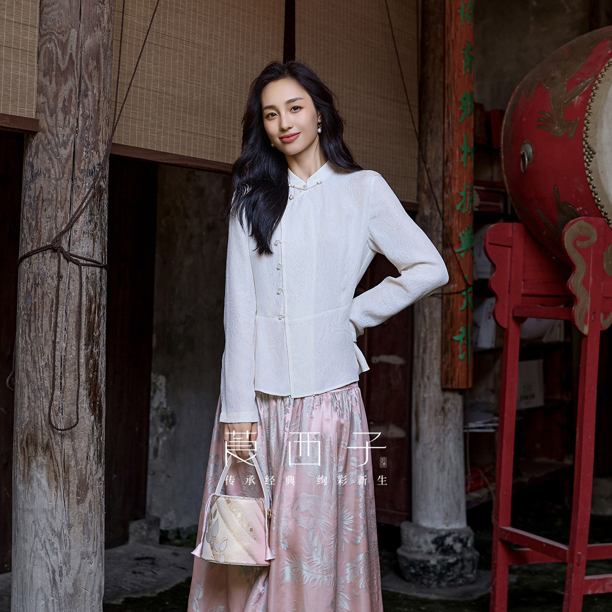 【100桑蚕丝】莨西子新中式国风立领长袖衬衫女春秋白色贵气上衣
