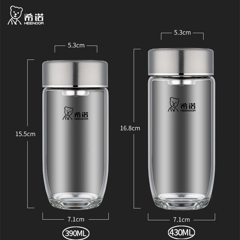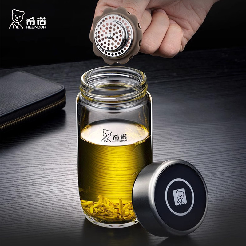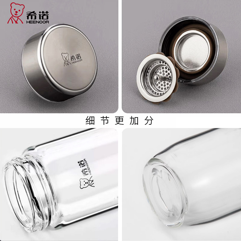 希诺单层玻璃杯大容量加厚带滤网带盖透明泡茶水杯耐热鹅蛋型杯子