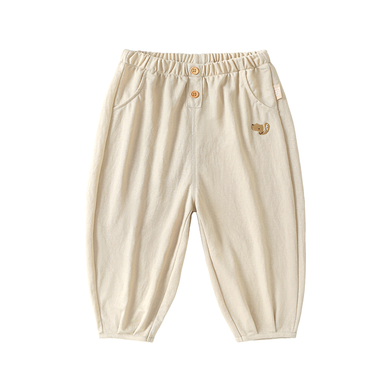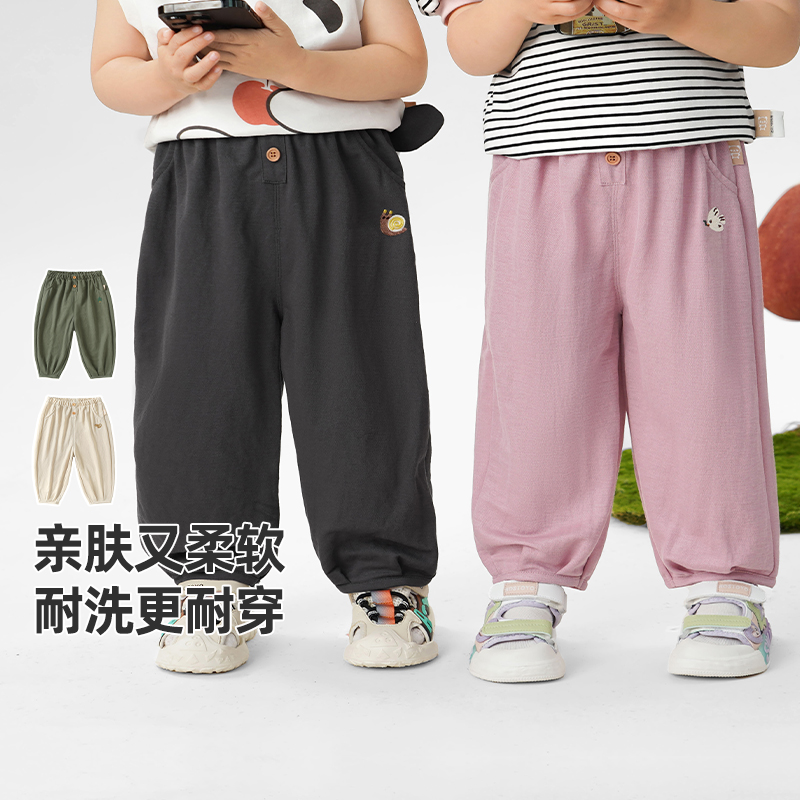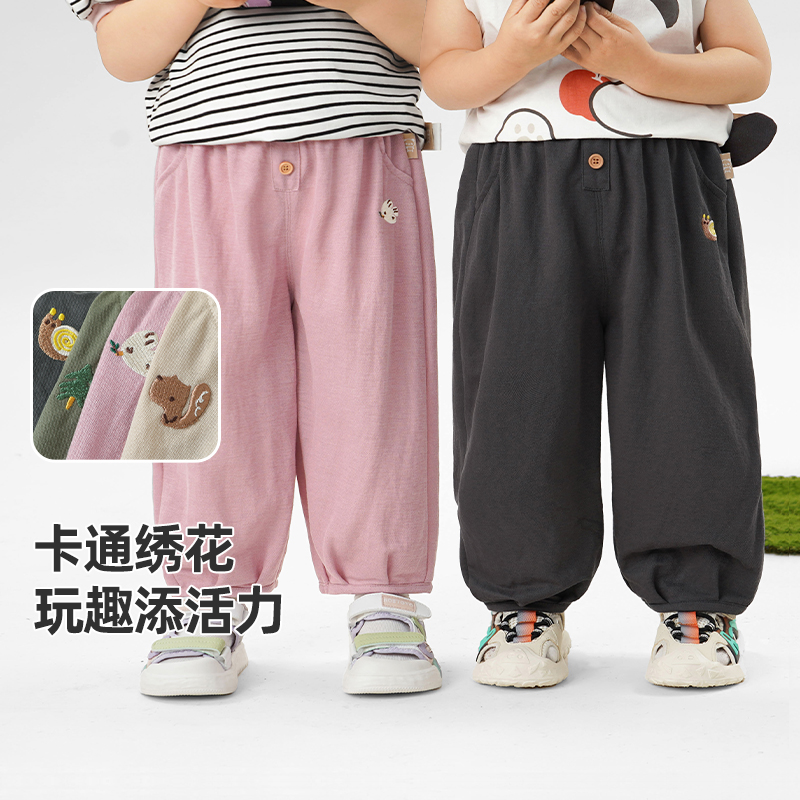 咔咔熊猫男童裤子夏装婴儿女童绣花防蚊裤春夏宝宝儿童空调裤薄款