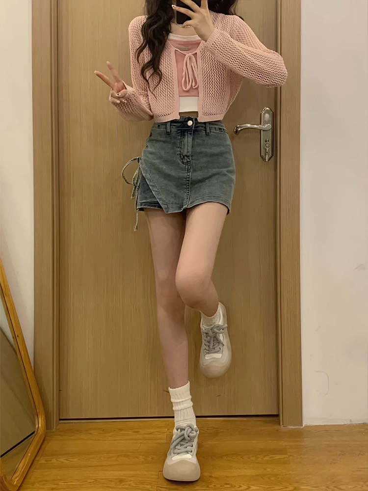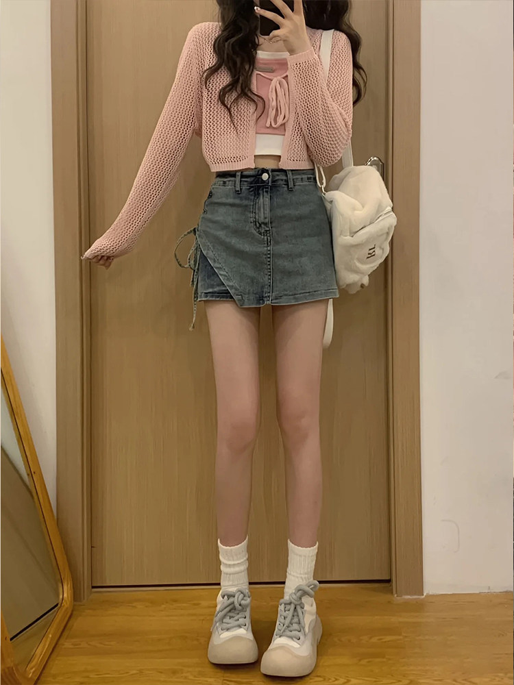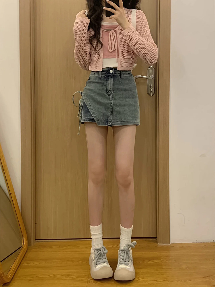 辣妹侧边抽绳高腰牛仔半身裙女夏季新款大码显瘦设计感a字短裙裤