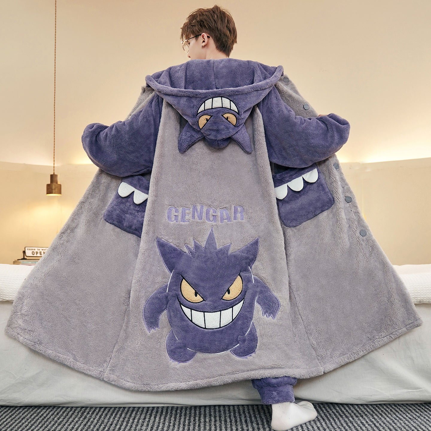 耿鬼男款冬季珊瑚绒加厚睡袍套装