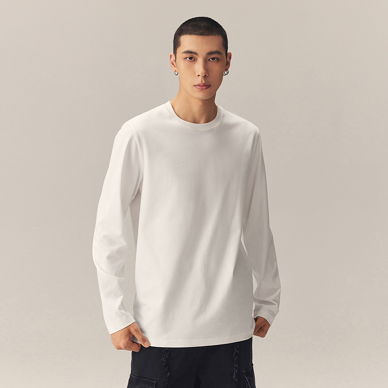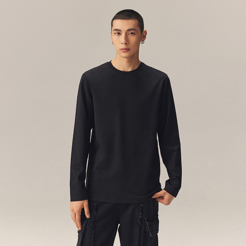 CH纯色磨毛长袖T恤男秋季新款宽松休闲内搭凉感透气打底衫上衣