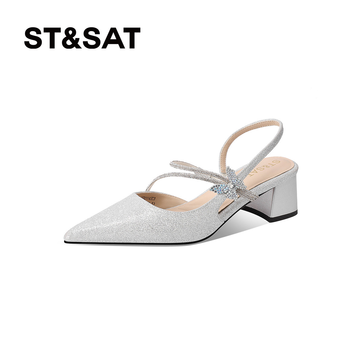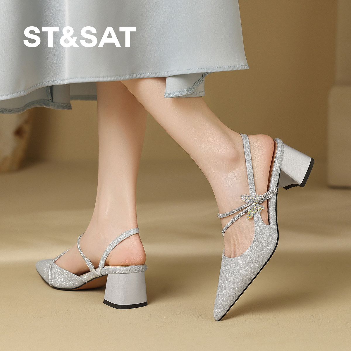 星期六法式绝美条带包头凉鞋女粗跟不累脚夏季配裙子尖头通勤鞋