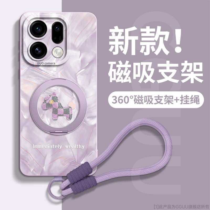 magsafe磁吸GGUU适用oppofindx9手机壳findx9新款x9套find发财小马x8可背带x7斜挎女ultra挂绳s支架pro全包外