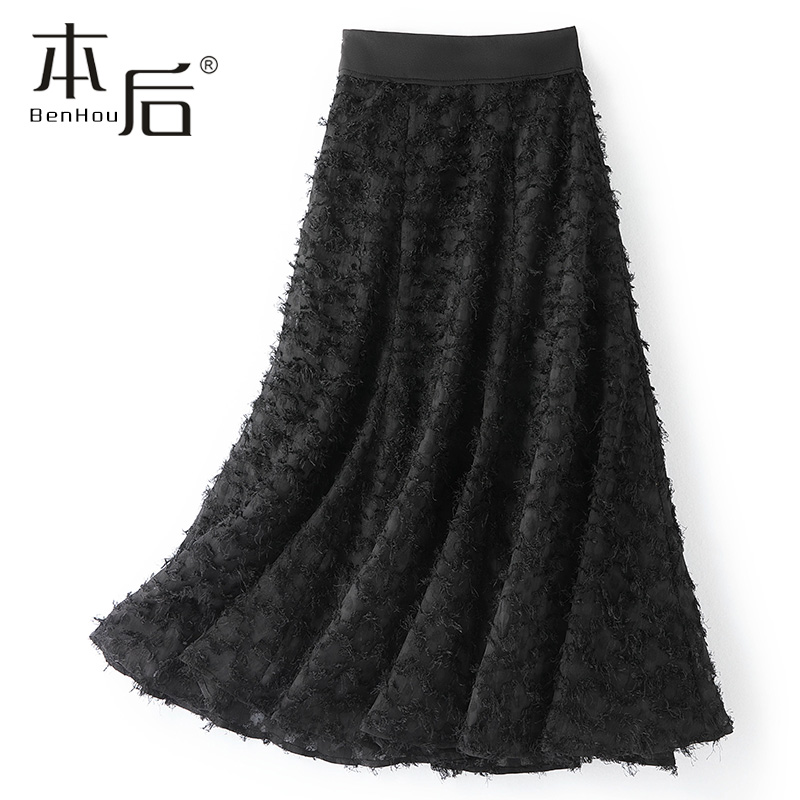 8811 流苏立体剪花高腰鱼尾a字半身裙春秋女中长裙百搭新款伞裙