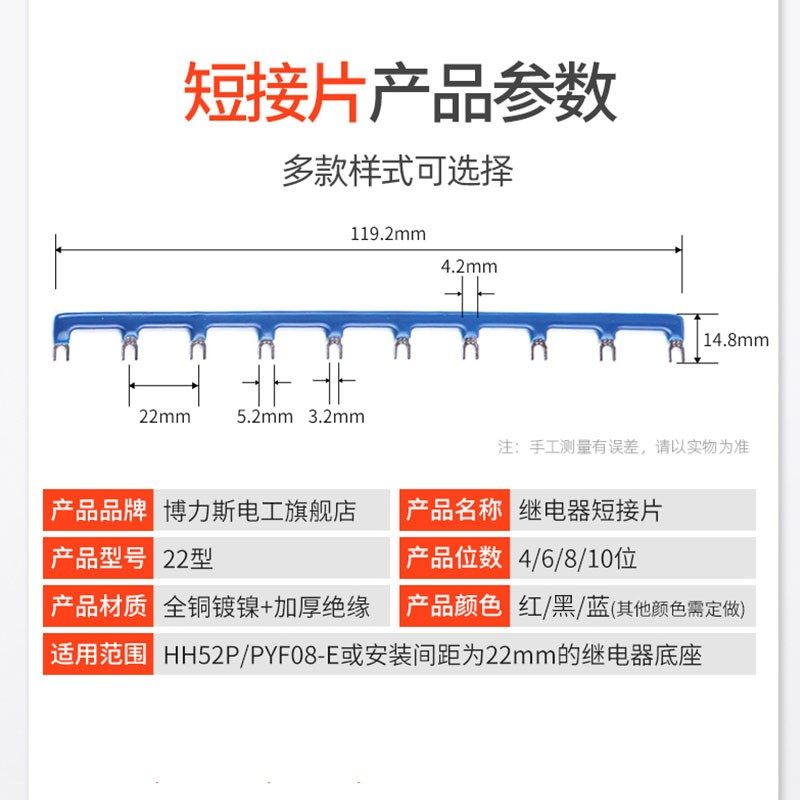 22mm中间继电器短接片正泰tPYF08A-E连接条施耐德HH52P线圈连接片