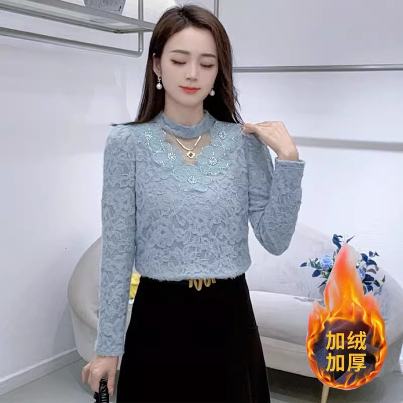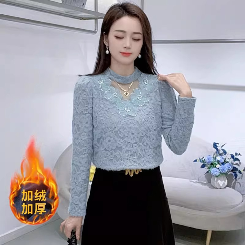 时尚气质蕾丝打底衫女2025秋冬新款洋气保暖气质减龄加绒加厚上衣