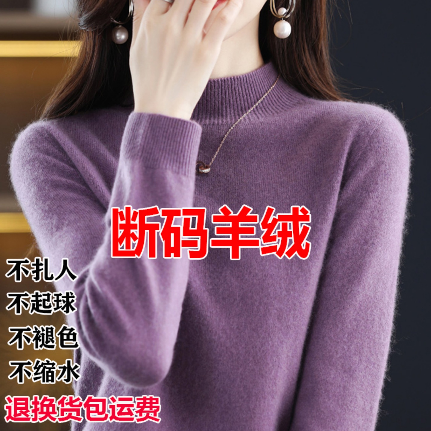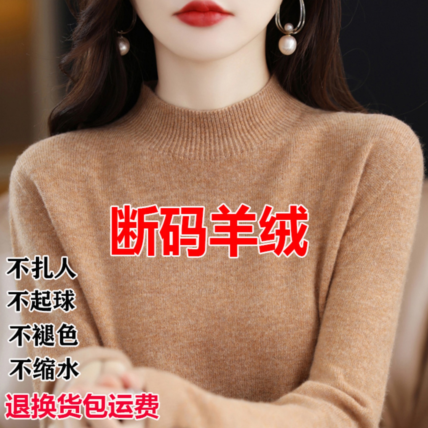 品牌高级感羊毛衫女半高领宽松毛衣秋冬加厚羊绒长袖针织打底衫新