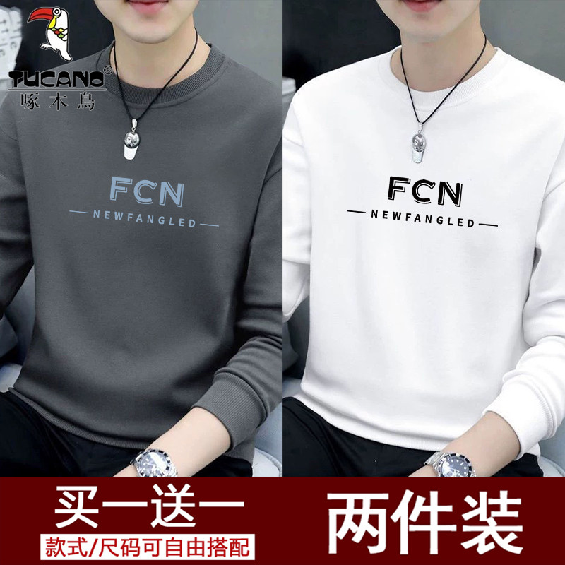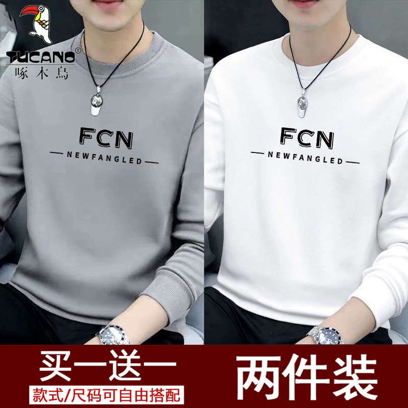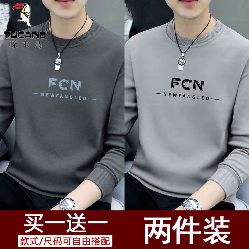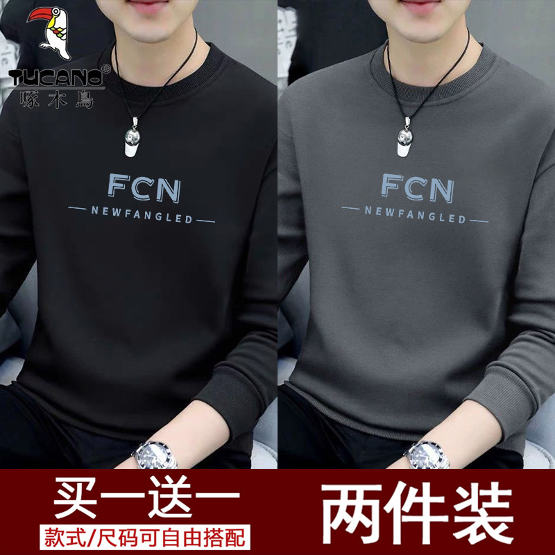 啄木鸟长袖t恤男士套头圆领卫衣2025新款加绒保暖打底衫上衣体恤