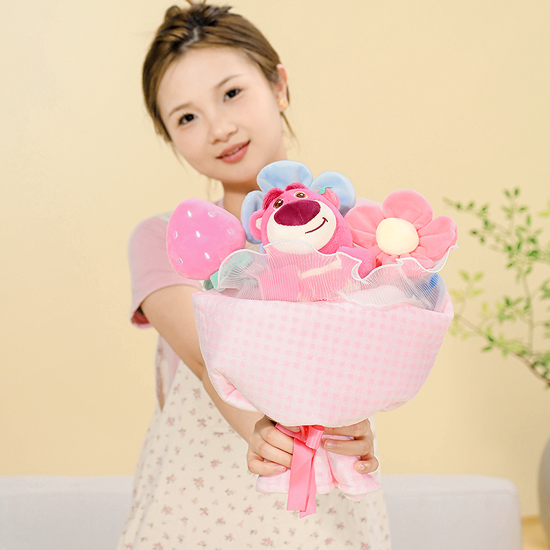 迪士尼Potdemiel草莓熊玩偶花束孩生日礼物送女男友情侣毛绒玩偶