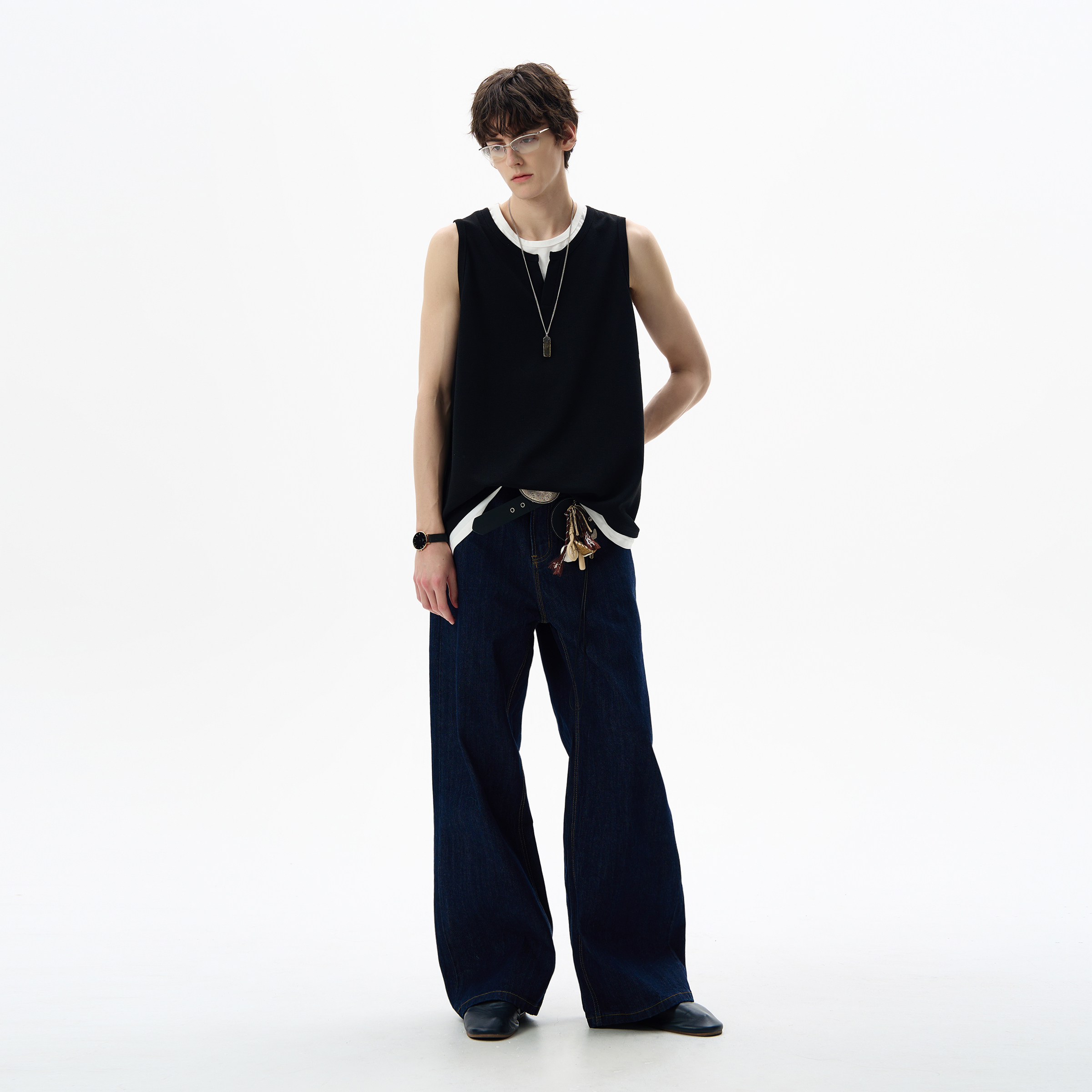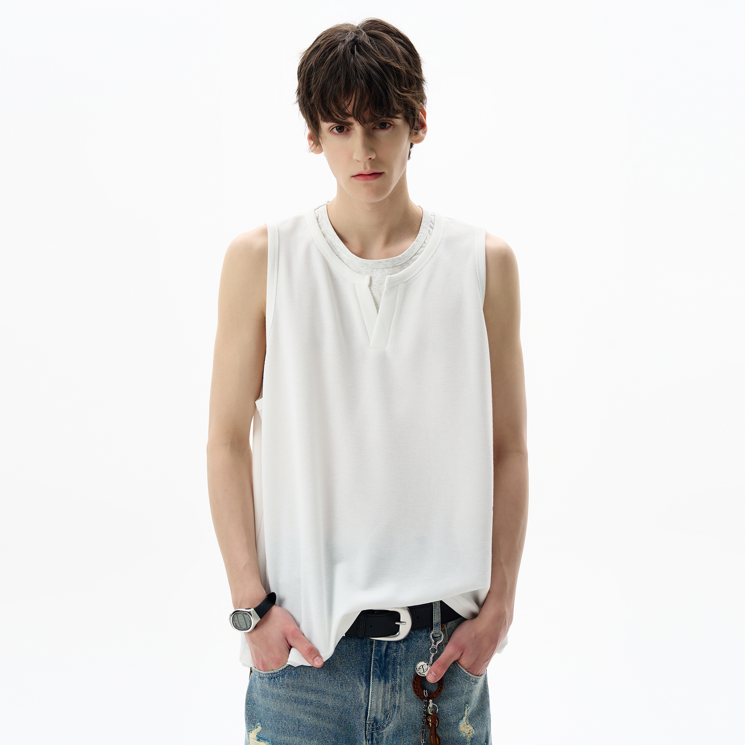 MADWITCH夏季简约假两件无袖背心T恤男女复古宽松休闲坎肩上衣ins