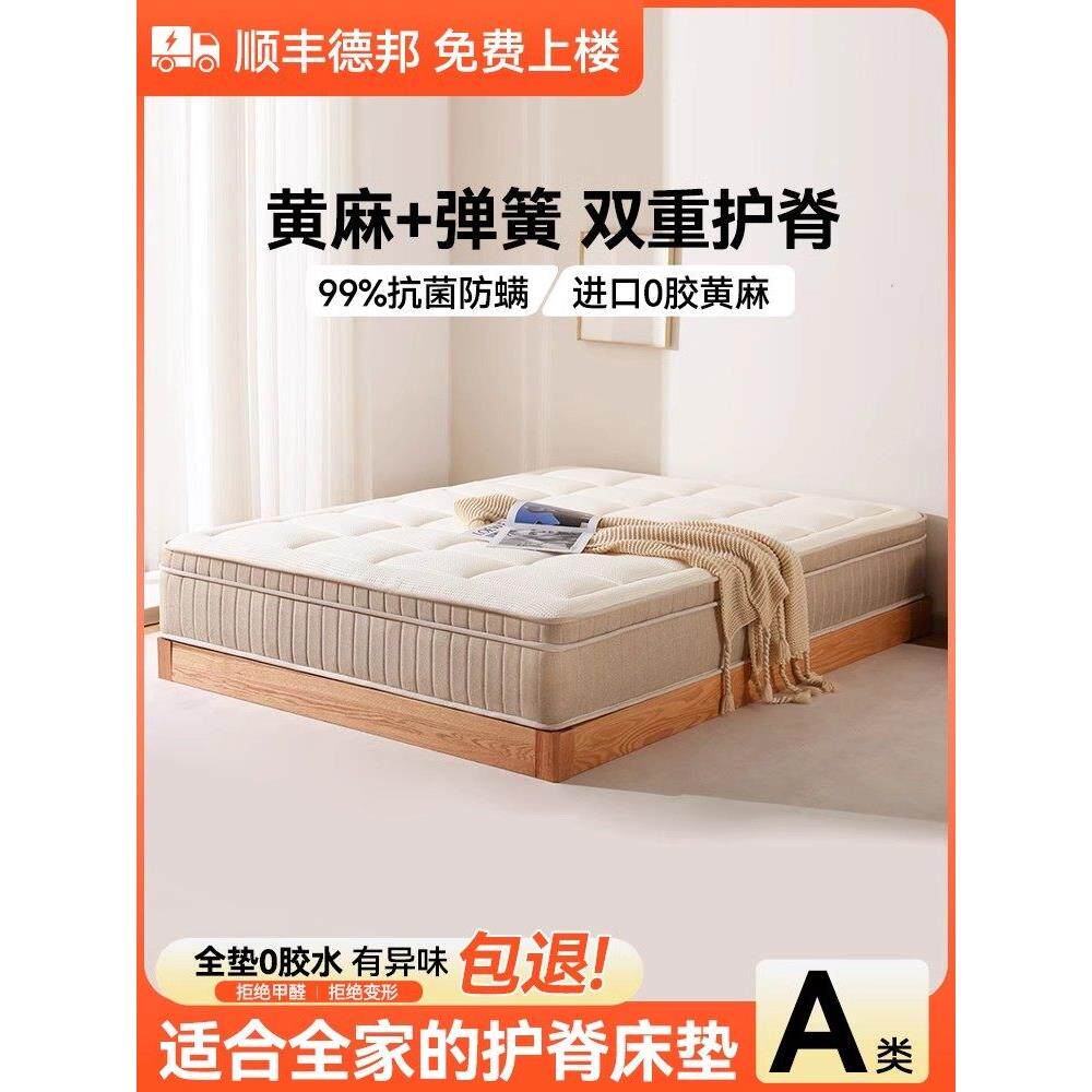 万面家庭独立弹簧床垫西蒙斯天然乳胶脊柱保护硬腰保护黄麻椰子棕