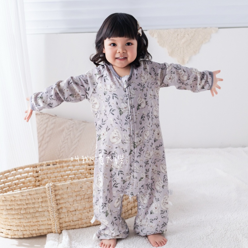 婴儿睡袋春夏季薄款双层长袖纱布宝宝连体衣空调房儿童防踢被四季