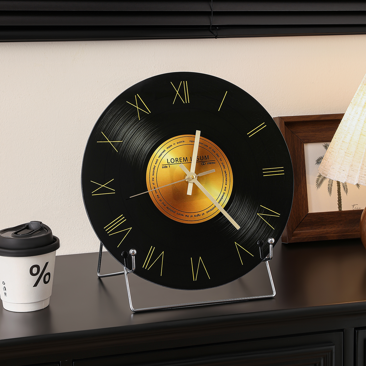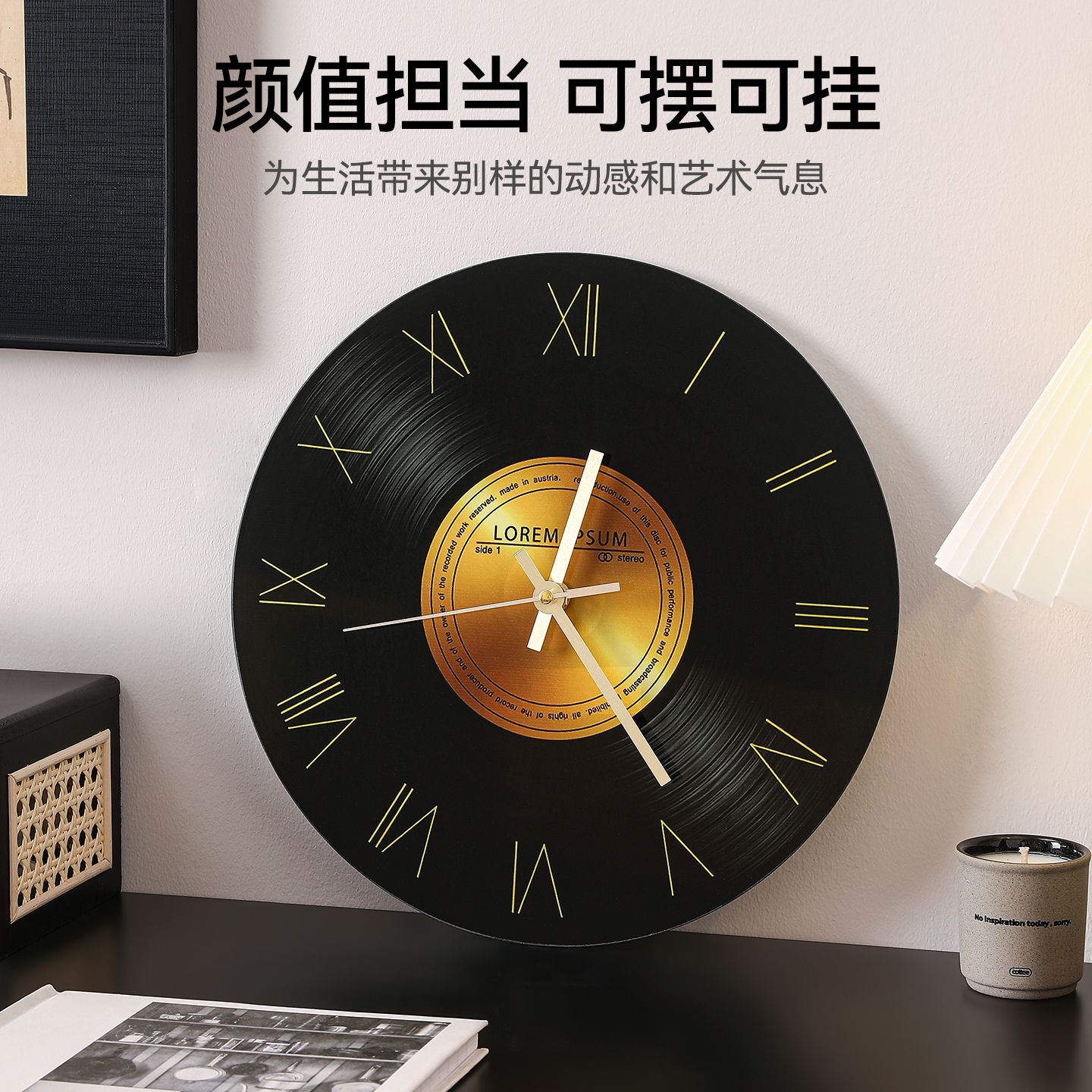中古风黑胶唱片桌面时钟摆件电视柜装饰品客厅轻奢高档高级感小众
