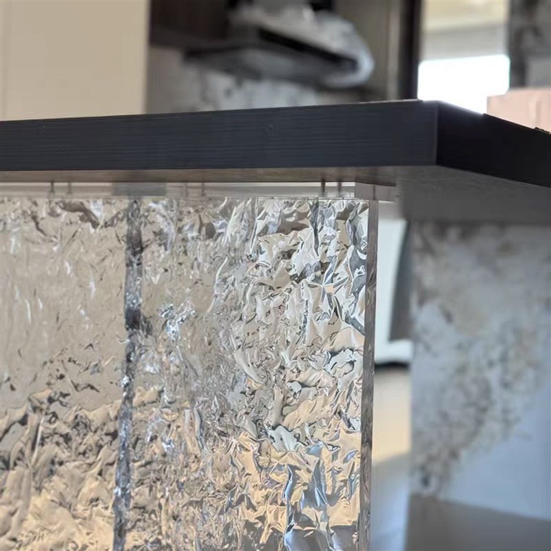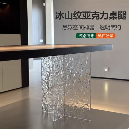亚克力定制透明餐桌悬浮支架茶几岩板岛台支撑架冰山纹桌脚加工