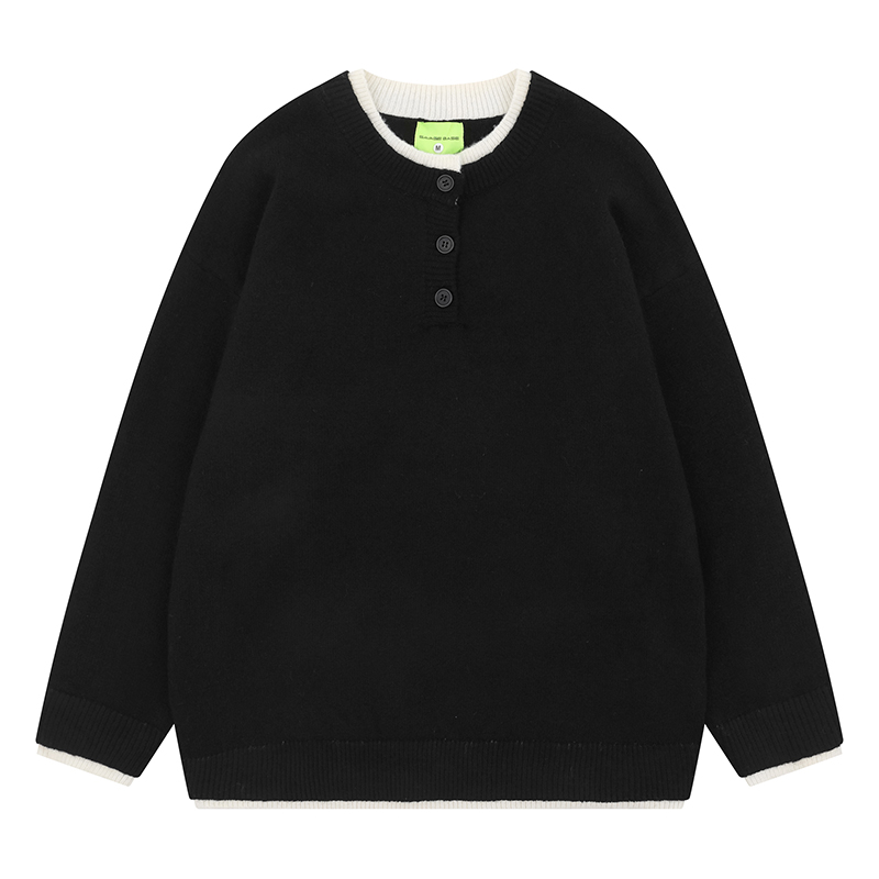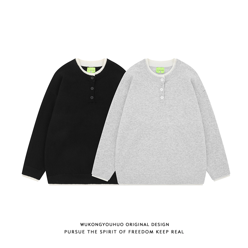 悟空有货复古假两件拼接亨利领毛衣男潮牌情侣宽松百搭休闲针织衫