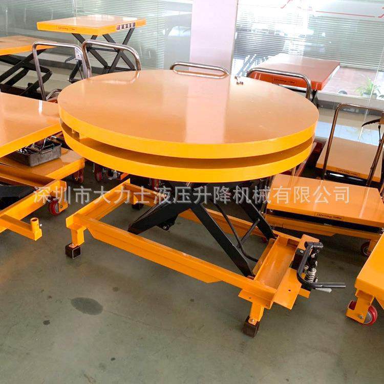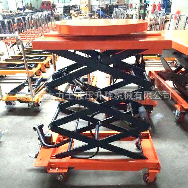 圆型手动平台车可60度旋转剪叉升降搬运车手推模具台车