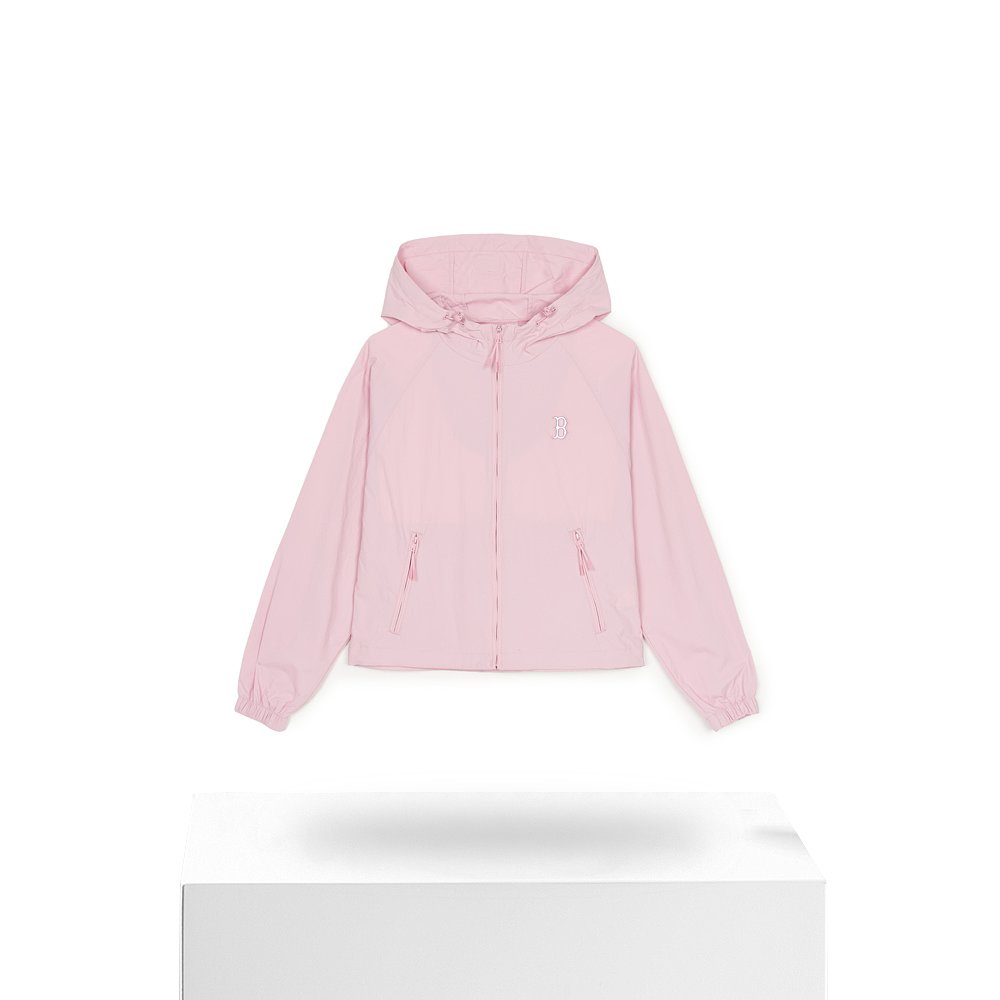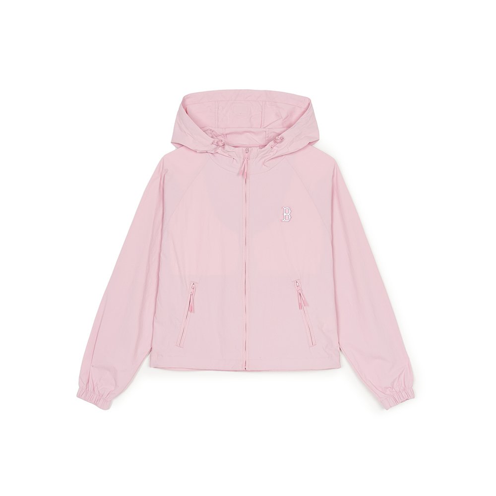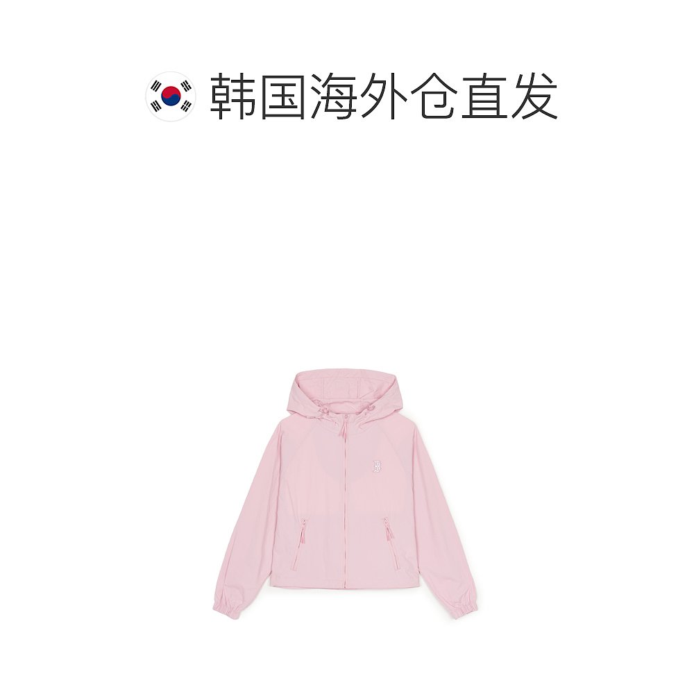韩国直邮MLB SS25 徽标连帽拉链短款长袖风衣 女款 粉色外套
