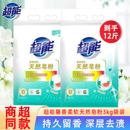 超能天然皂粉洗衣粉3kg袋6斤家用装馨香柔软持久留香深层去渍正品