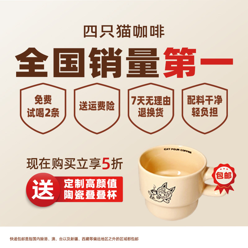 四只猫西梅芭乐蔬果咖啡云南速溶咖啡粉羽衣甘蓝代餐提高代谢低糖