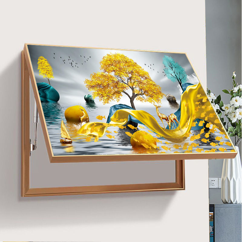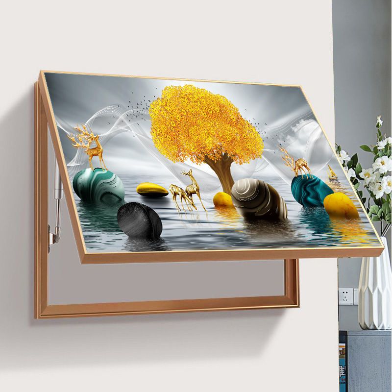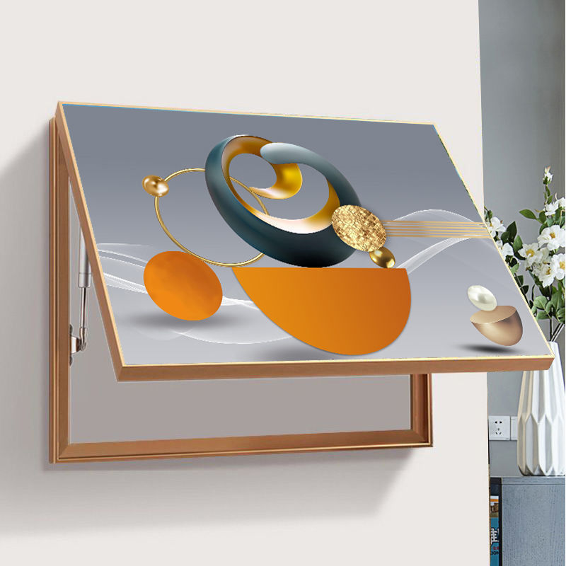 热销电表箱装饰画现代简约配电箱遮挡箱画轻奢铝合金边框液压翻盖