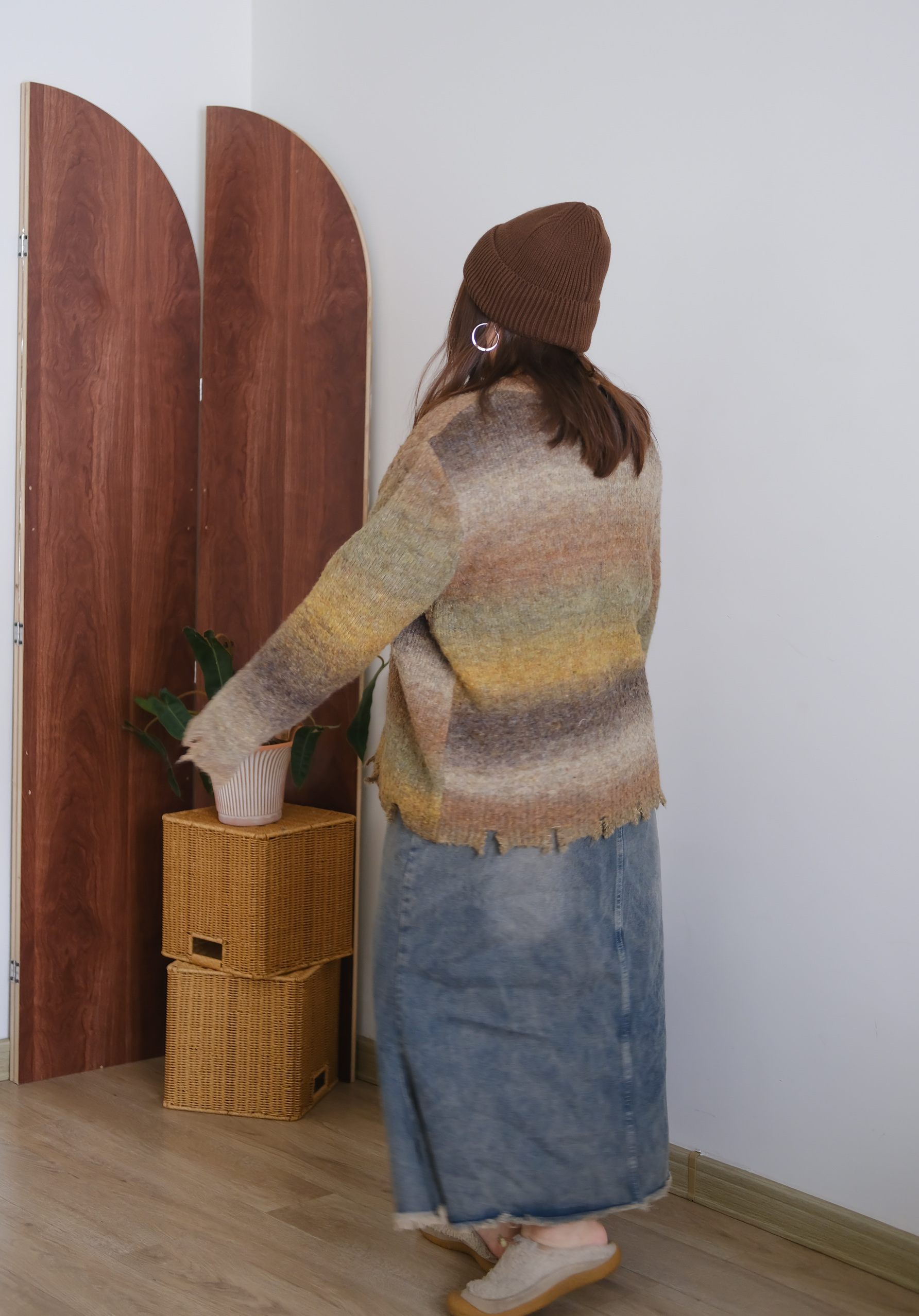 zooobaby10/31晚八点 复古做旧毛边V领渐变色渐变宽松毛衣