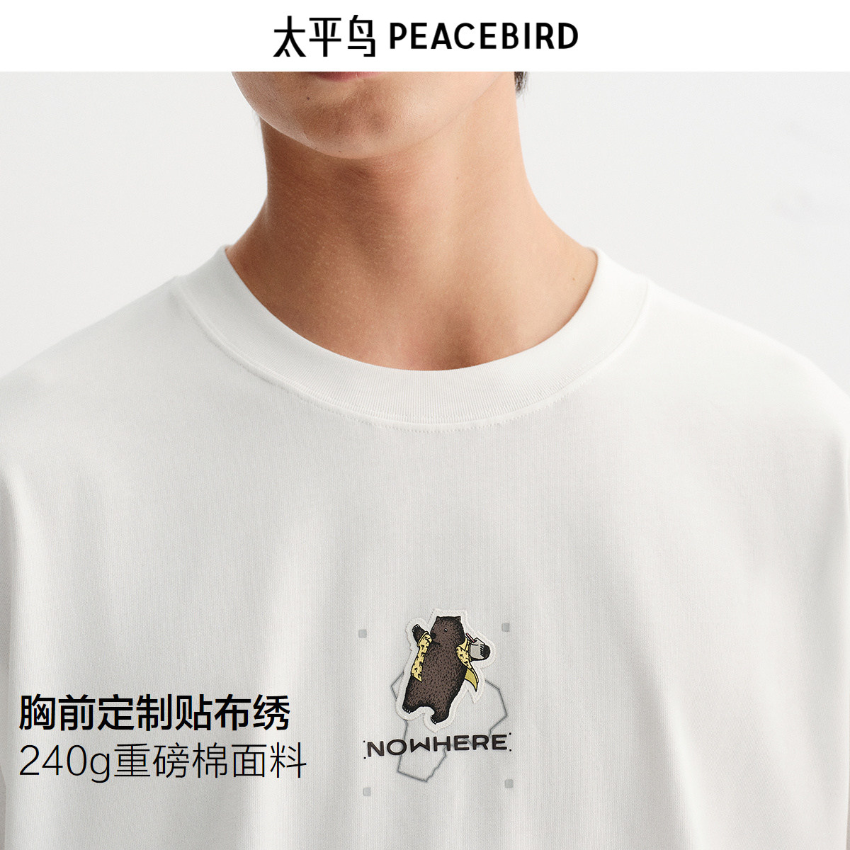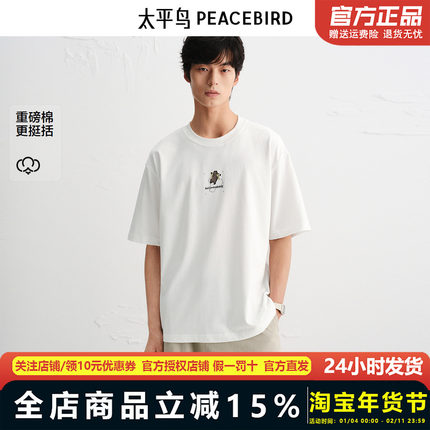 【商场同款】太平鸟男装重磅短袖T恤25秋新款刺绣体恤衫B2CNF3202