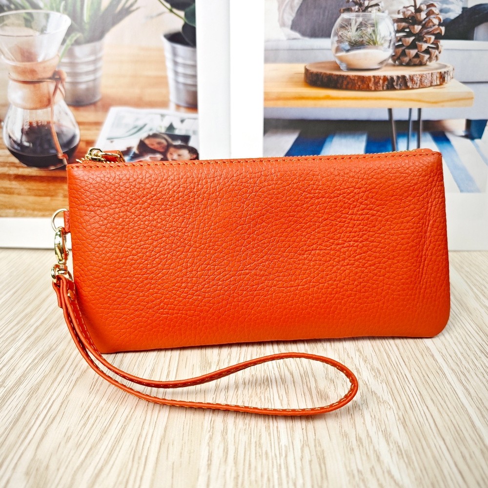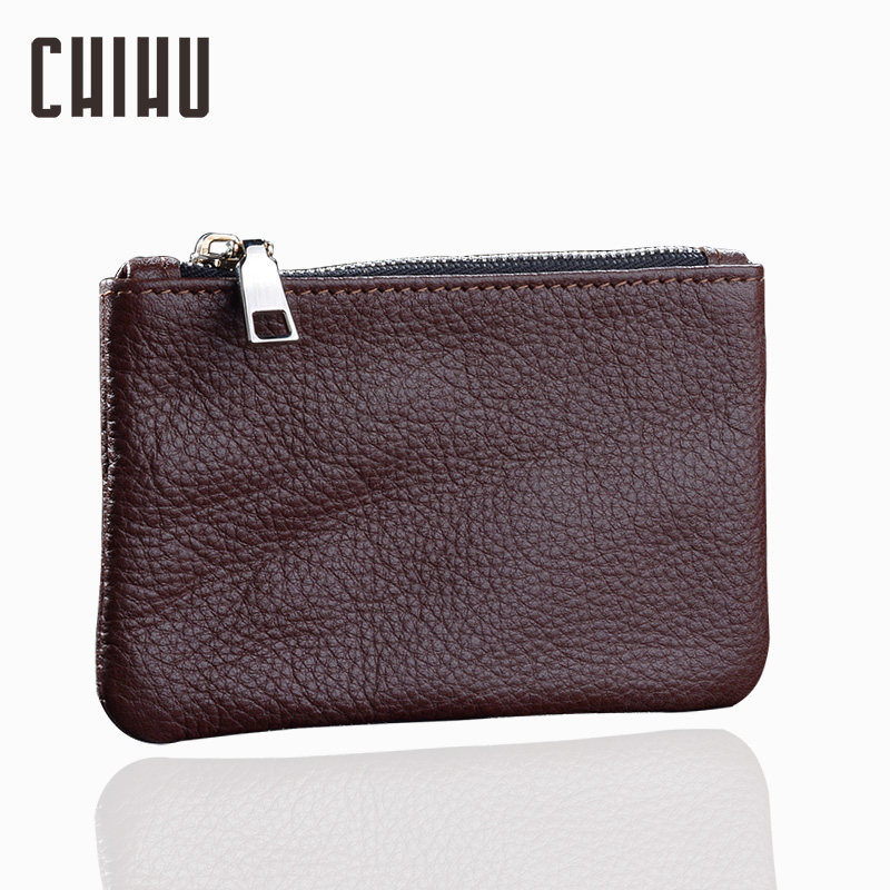 迷你牛皮拉链赤虎牛皮老年零钱包