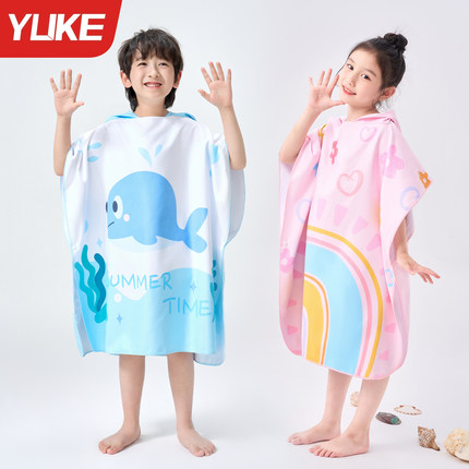 儿童浴巾斗篷洗澡可穿宝宝浴袍吸水速干带帽男女童游泳温泉大裹巾