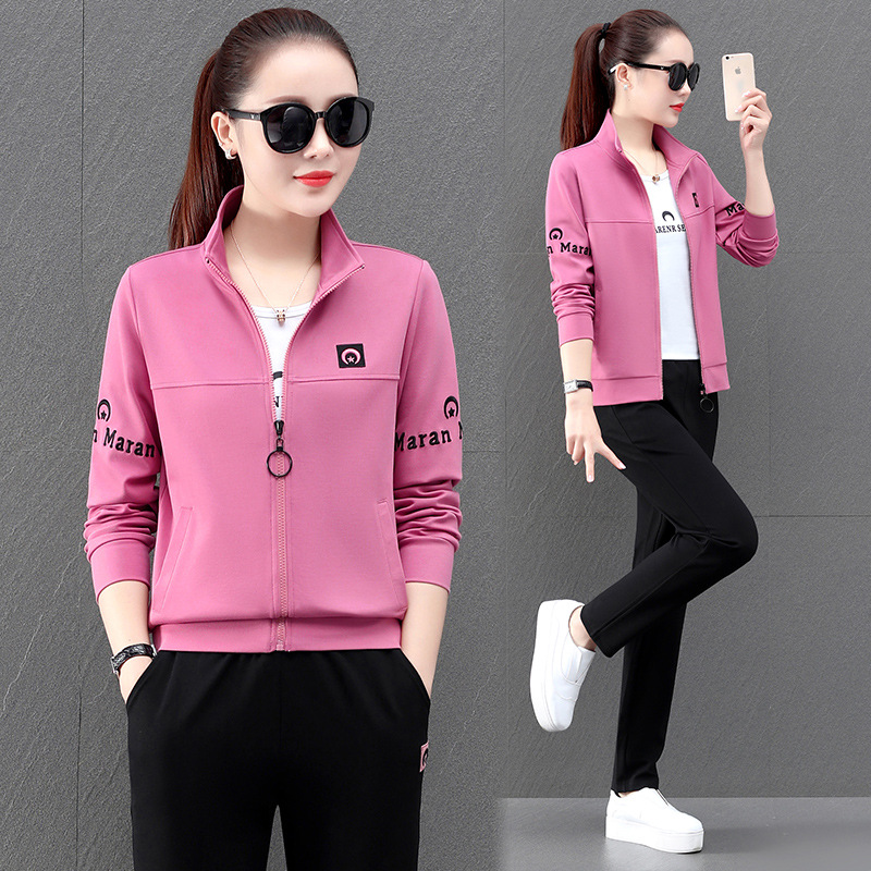 春季长袖运动套装女2022新款韩版开衫显瘦休闲服三件套春秋女卫衣