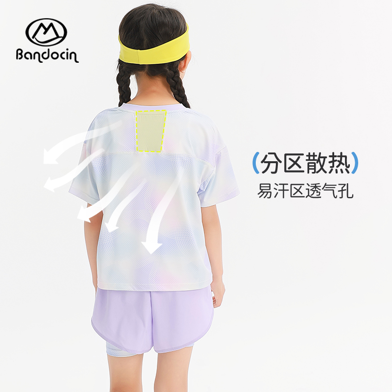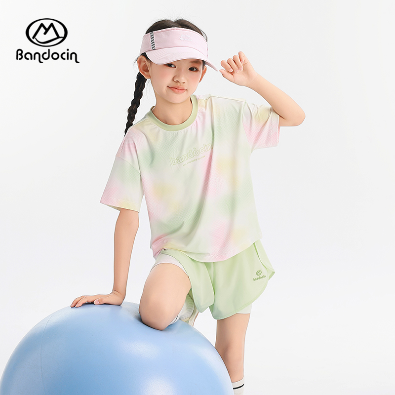 半度闲女童短袖凉感套装夏季2025新款儿童透气防晒两件套速干夏装