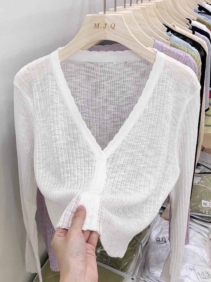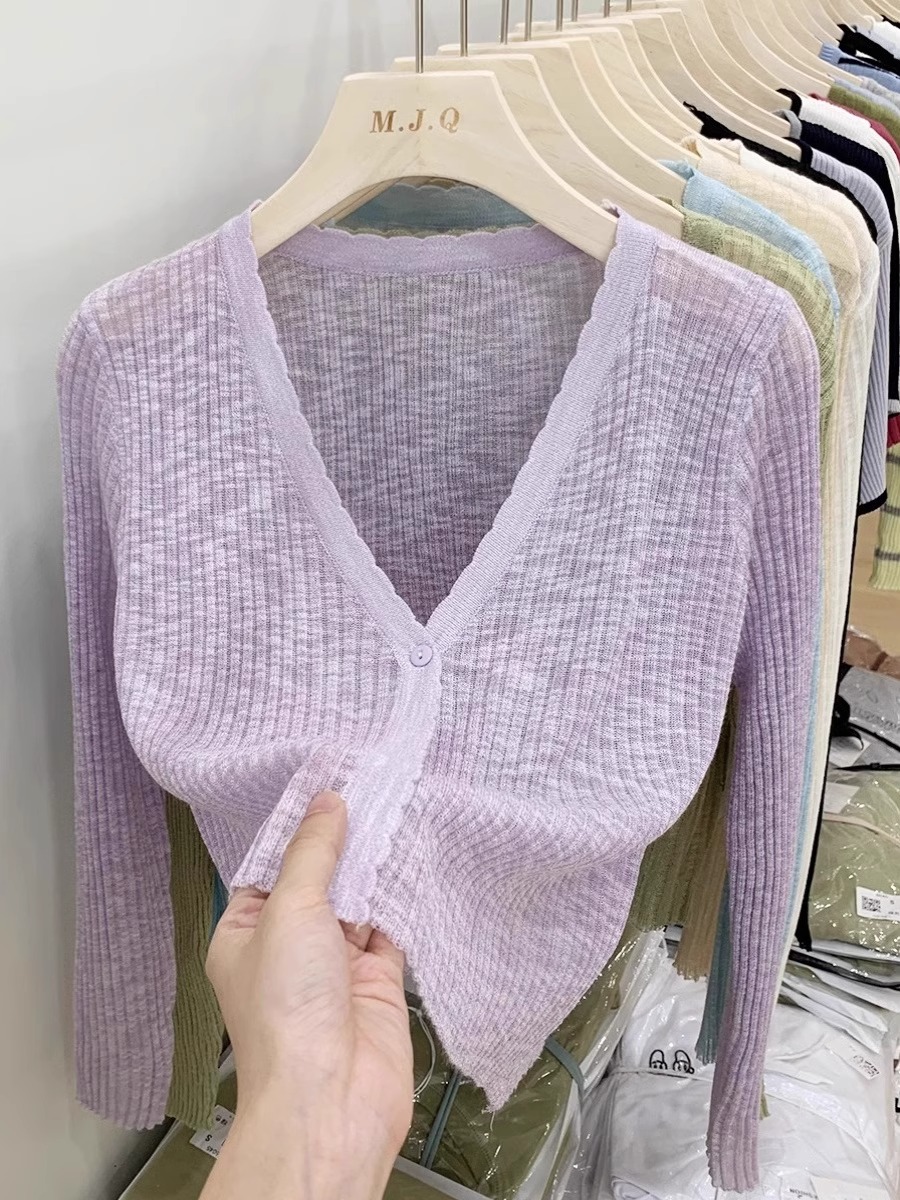 针织冰丝开衫短款长袖夏季新款外搭空调衫防晒衣小披肩上衣女罩衫